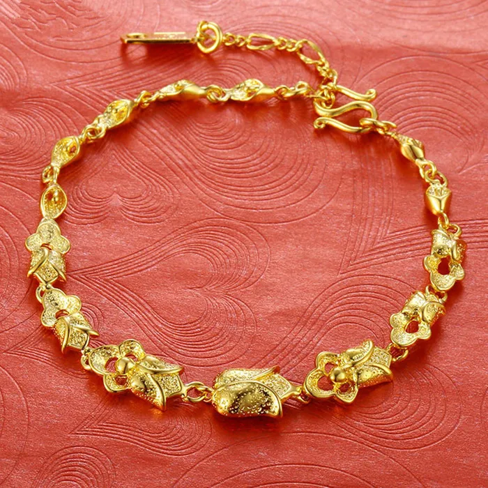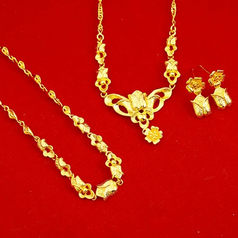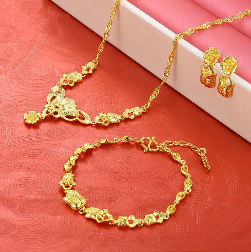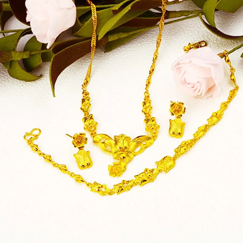 Promo Beautiful Jewelry Set Yellow Gold Filled Rose Flower Necklace/Bracelet/Earrings Women Wedding Brida