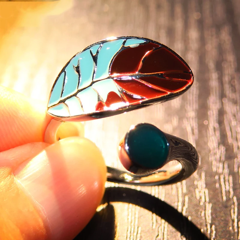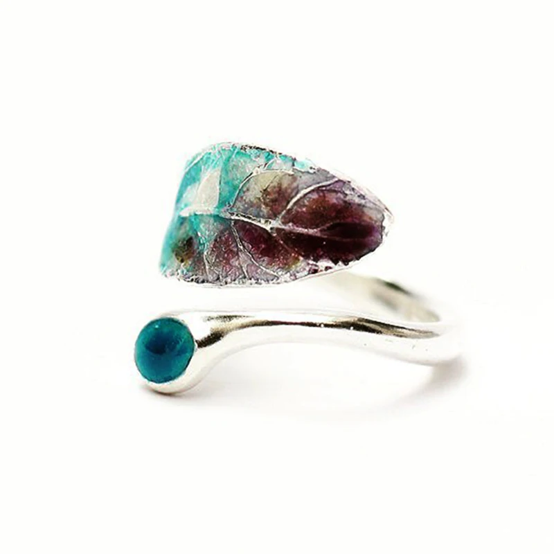 Buy Fashion Big Green Brown Leaf Rings For Women Vintage Antique Gold Hollow Leaf Feather Adjustable Ri