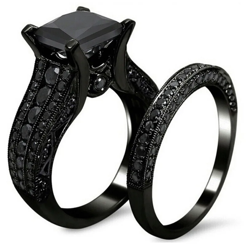 Buy Fashion Big Square Zircon Ring Set Vintage Black Couple Ring Titanium Jewelry Wedding Rings For Wom