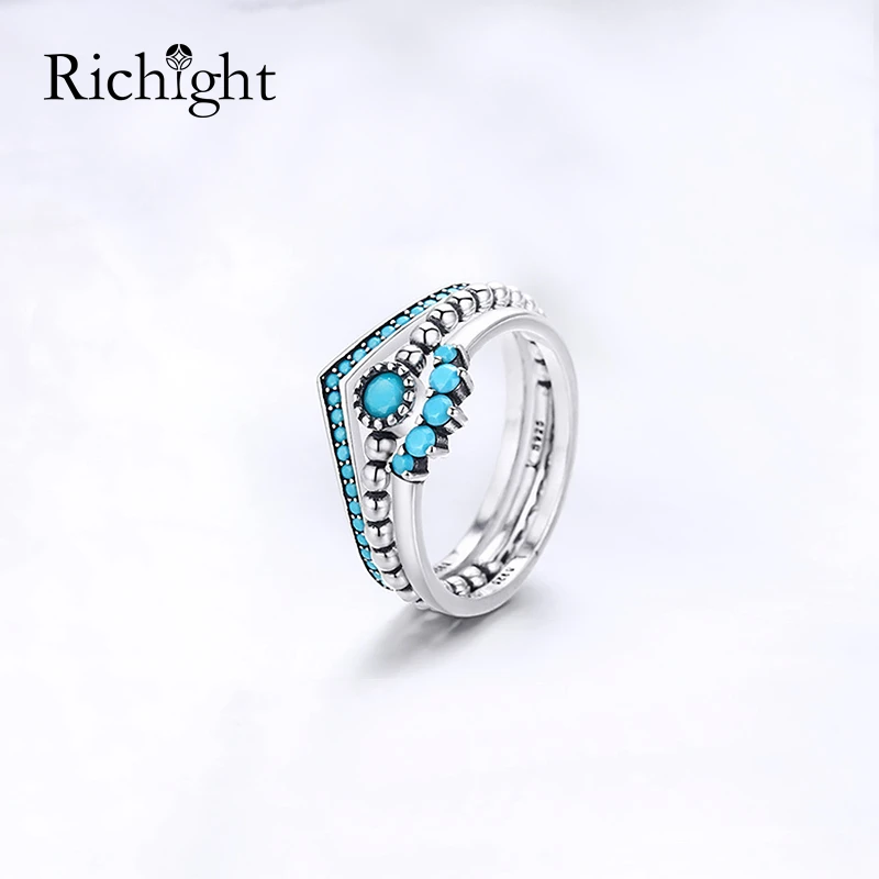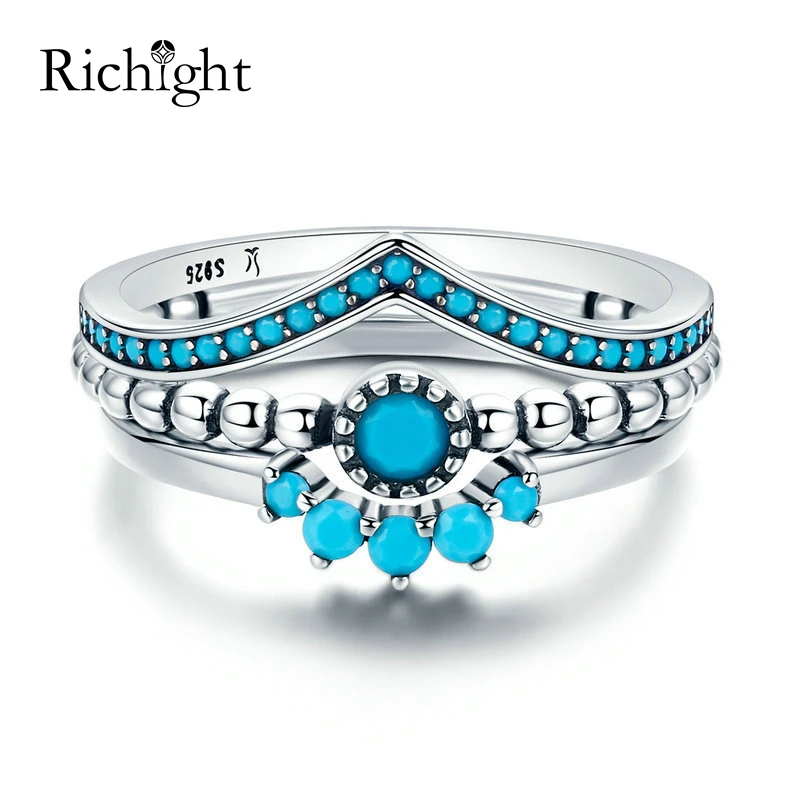 New Vintage Turquoise Jewelry 3pcs Set Layered Stacking Rings Womens Mens Combination Ring 925 Sterling